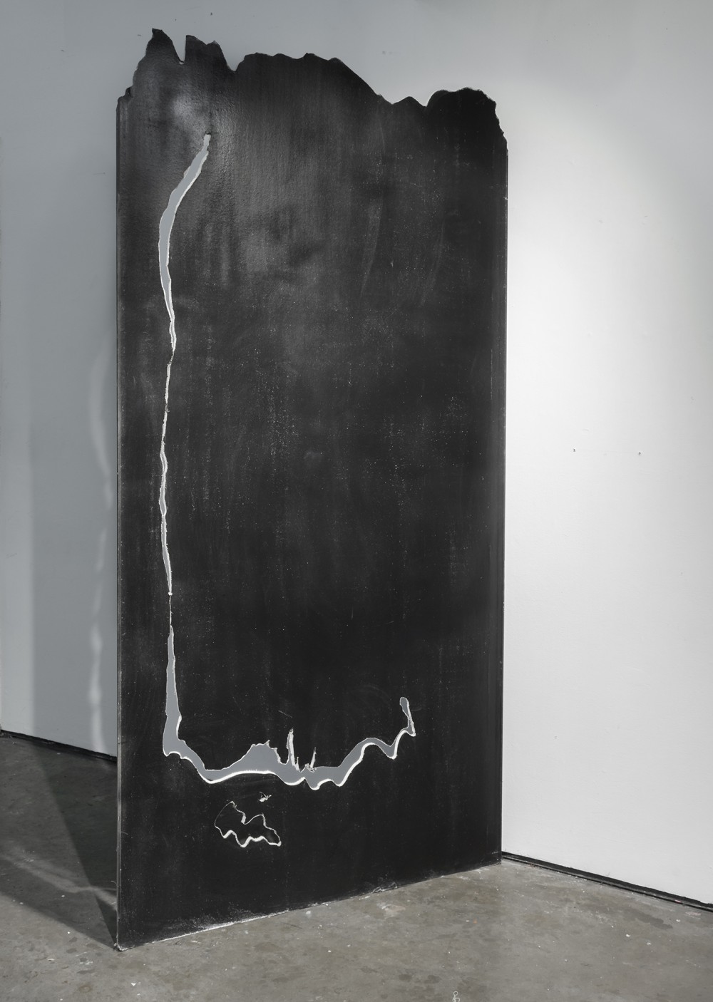 A blind-contour drawing of an aerial view of Zayandeh Rud (Fertile River) made with a jigsaw. Zayandeh Rud flows Northwest to Southeast of Iran, from Zard Kuh Mountains to Gavkhuni Wetland. In recent years, the river has run dry due to mismanagement, abuse, and drought.