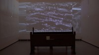 holy land of the infertile crescent is a three-channel video installation that renders land and body as interconnected and entangled domains, both marked by extraction, surveillance, and erasure. Weaving together familial oral histories, found footage from American drone strikes, and repurposed church pews, the work forms an immersive environment that confronts the viewer with the violence of distance—how abstraction in military tactics facilitates the dehumanization of bodies and the flattening of place.