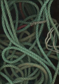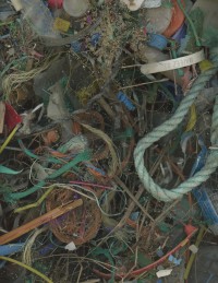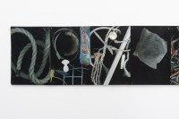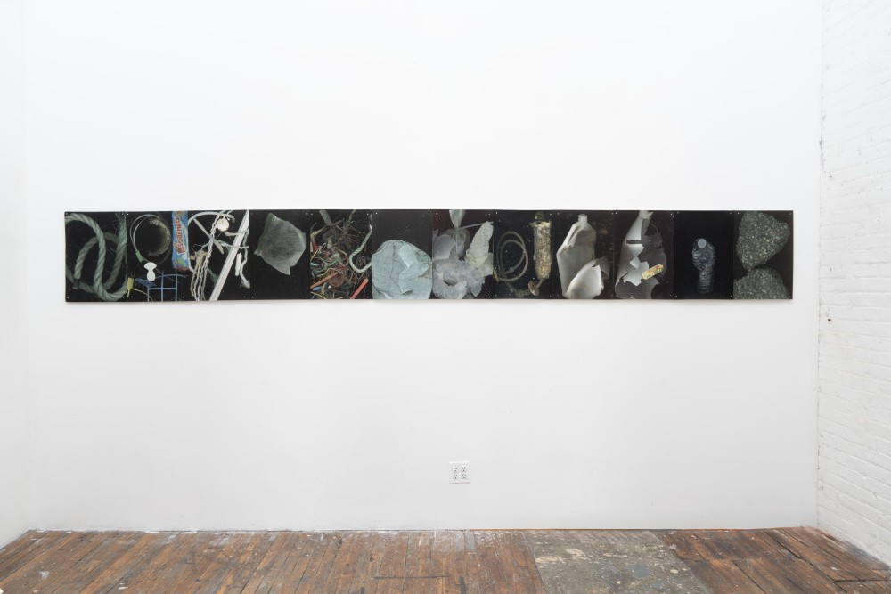 postcards from the Atlantic begins with the wide sprawl of fossil-fuel-based debris washed ashore along the coastline of Cape Cod Bay. Found, collected, studied, and cataloged during the artist’s fellowship at the Fine Arts Work Center in Provincetown, Massachusetts, these remnants of contemporary life—frayed rope, bleached buoys, medical supplies, unidentifiable jugs, hygienic products, toys, and fragments of fishing gear—speak to both the ubiquity and anonymity of marine plastic pollution.